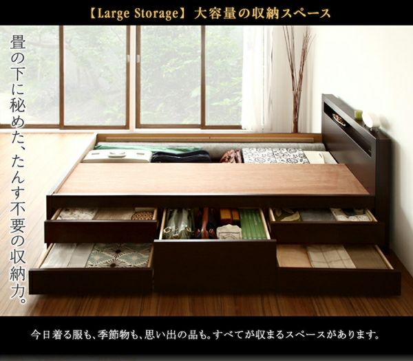 他の画像を見る ダークブラウン ライトブラウン 改行ラベル S SD D 照明・棚付き国産畳収納ベッド 【月下】Gekka 詳細を見る お気に入りに登録する 当店特別価格 ¥ 57,900 税込 〜 当店特別価格 ¥ 税込