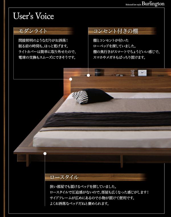 モダンライト・コンセント付きローベッド 【Burlington】バーリントン