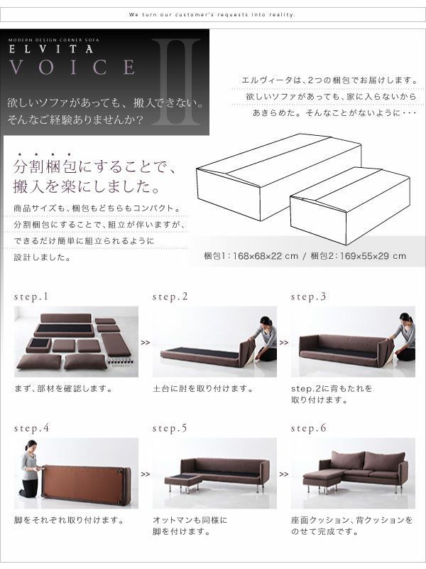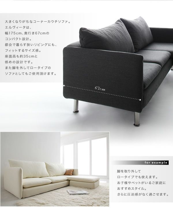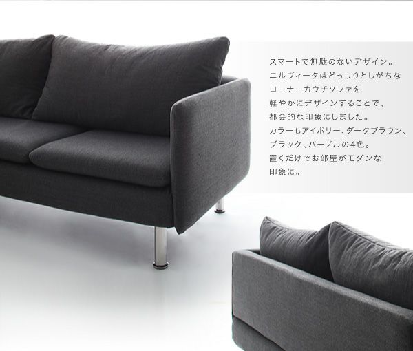 モダンデザインコーナーカウチソファー 【Elvita】エルヴィータ スペック