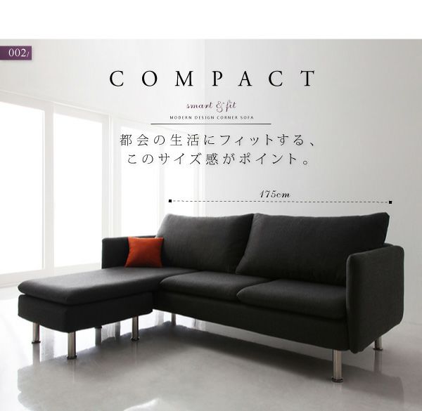 すっきりとした都会的なデザインで、都会住居に合わせて幅は175cmのコンパクト設計。自由に、自分スタイルが可能です。また、座面クッションはずっと座っていても疲れないように、沈み込みが少ない硬さに。背クッションは、背中をゆったりと預けられるように、座面クッションよりも柔らかくしました。
