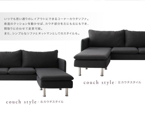 座面を入れ替えてオットマンスタイルや、カウチ部分の左右を入れ替える事もできます。
