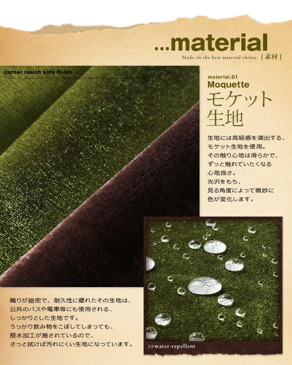 カラーはモケットグリーンとモケットブラウンの2色からお選びいただけます。