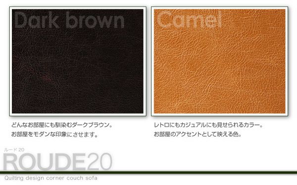キルティングデザインコーナーカウチソファー 【ROUDE20】ルード20 スペック