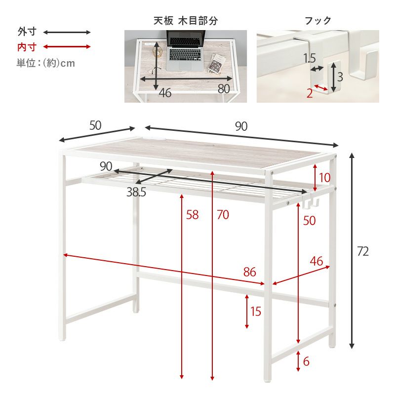 【サイズ】 デスク:(約)幅90×奥行50×高さ72cm