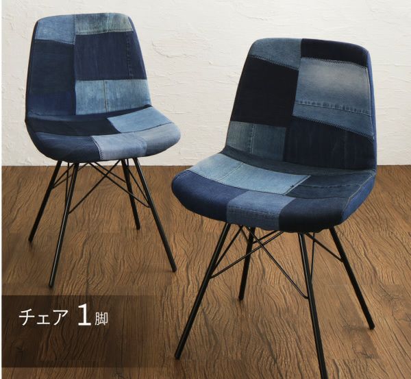 パッチワーク柄デニム地デザインチェアー