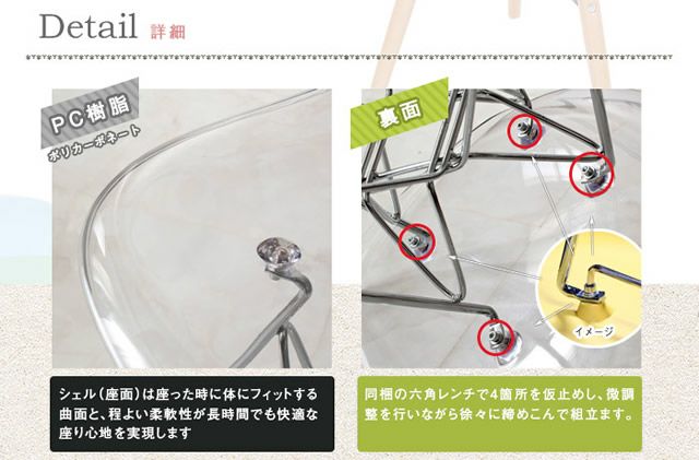 【カラー】 クリアー(木脚)、クリアー(スチール脚)