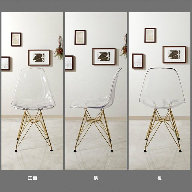 人気のシェルチェアにクリアカラー限定で《ゴールド脚》が追加登場です。透明なので圧迫感を感じさせない為、様々なテイストと相性が良く、モダンなインテリアにはもちろん、北欧インテリアにも洗練された印象を加えるアクセントになります。