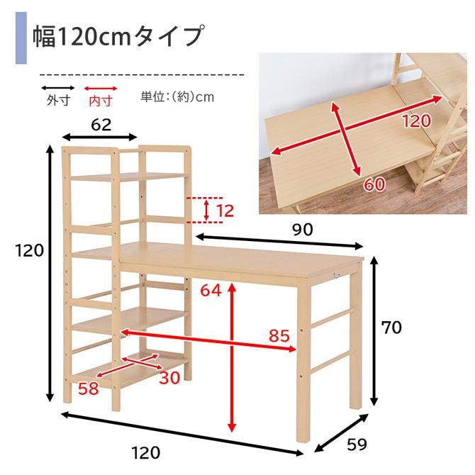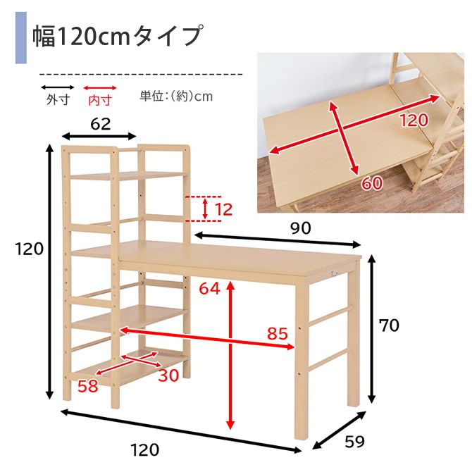 幅120cmタイプ:(約)幅120×奥行62×高さ120cm