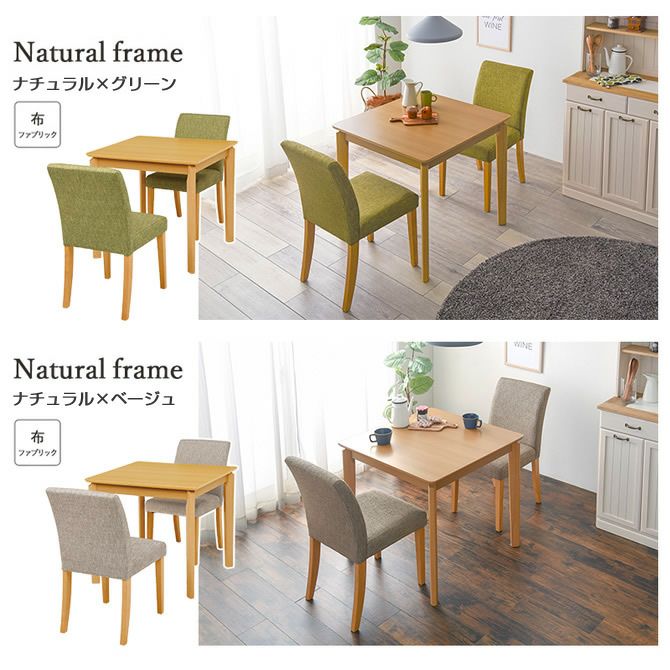 フレームはナチュラルとブラウン、チェアの張地は布・ファブリックで計6パターンの組み合わせよりお選び頂けます。