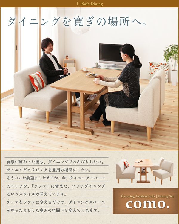 カバーリングアームレスソファーダイニングセット 【como.】コモ