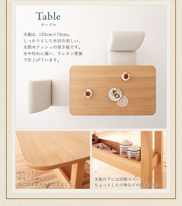 シンプルだから、飽きも来ず永く使って頂けるデザインに仕上げました。汚れやすいダイニングでも汚れが気になったら、カバーを外してドライクリーニングが可能です。また、テーブル天板は天然目アッシュの突き板で水や汚れに強くウレタン塗装仕上げ。その他、ダイニングでの機能を発揮できる機能やこだわりが満載です。