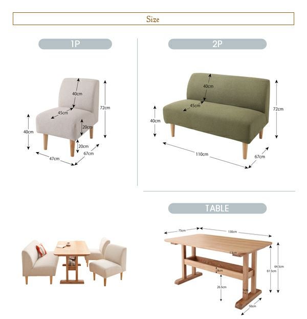 ダイニングテーブルにプラスするソファーは、1人掛け、2人掛けの組み合わせも生活スタイルによって様々なパターンに対応できます様、全4タイプをご用意。