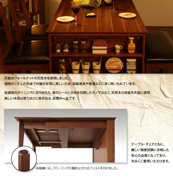 シンプルだけど、収納力は抜群!女性でもラクラク簡単、いつでも伸縮!子供と一緒でも、安心で安全な食卓を!お手入れラクチンで開発担当者こだわりの素材のダイニングセットです。