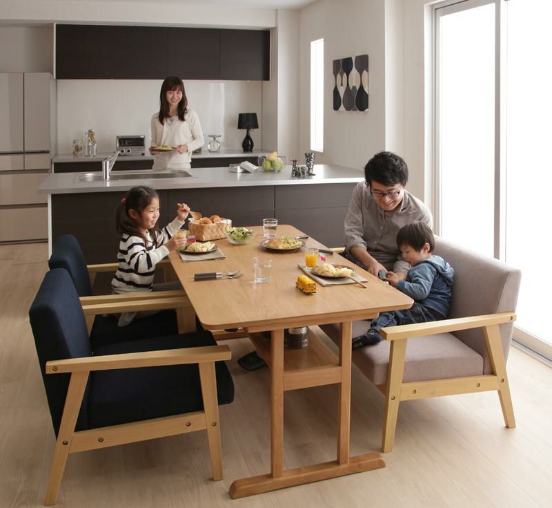 通常のダイニングよりも低く設計されており、リビング学習にも最適で圧迫感がないので見た目もスッキリ!カフェのようなおしゃれで落ち着いた空間となり、ソファなのでお子様だけで座っても安心です。