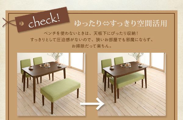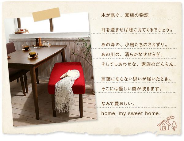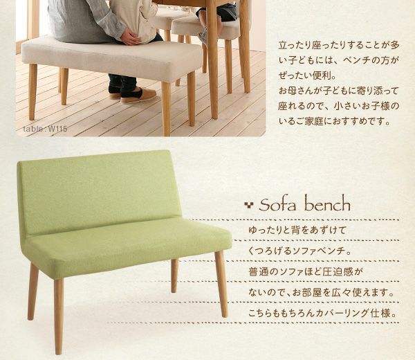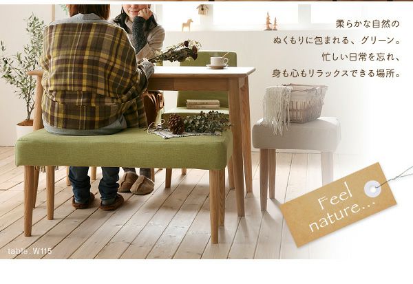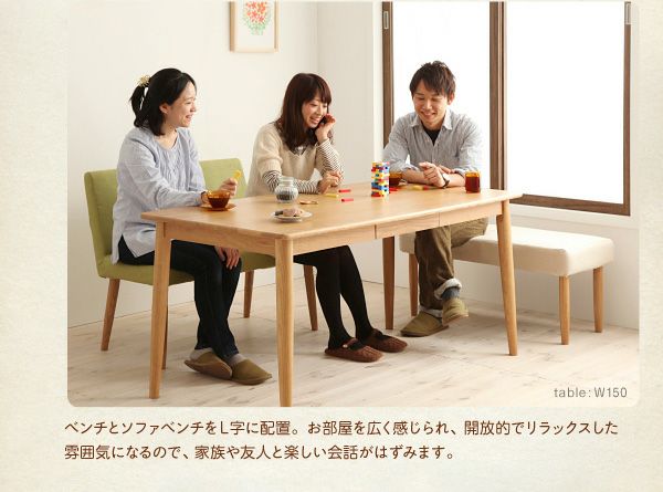 木目が美しい天然木の無垢材を使用し、頑丈で丁寧な造り。チェア・ベンチはカバーリングなので、汚れたらドライクリーニングが可能です。チェアカラーの豊富な選択や、ベンチとの組み合わせなど豊富なシリーズ展開。家族の笑顔が集まる場所として末長くご愛用いただけます。