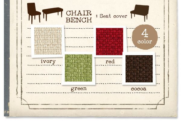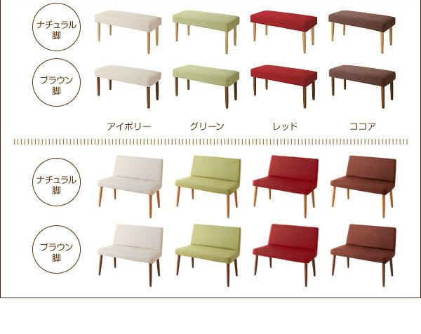 ベンチ、チェア:アイボリー、グリーン、レッド、ココア
