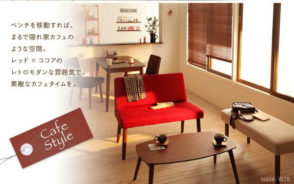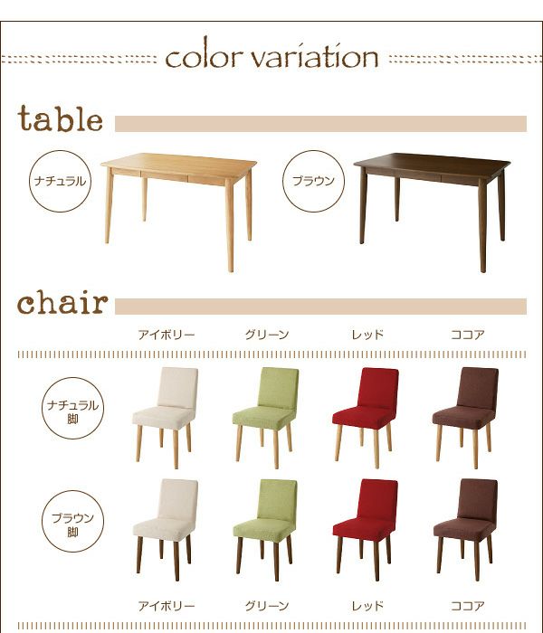 テーブルのカラー、およびベンチ・チェアのカラーをそれぞれ選んで自分流の組み合わせに♪