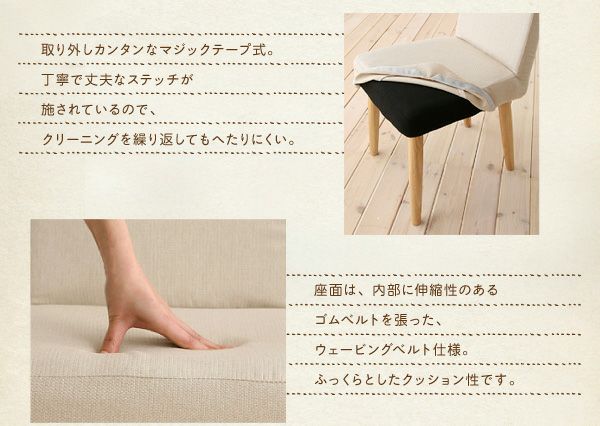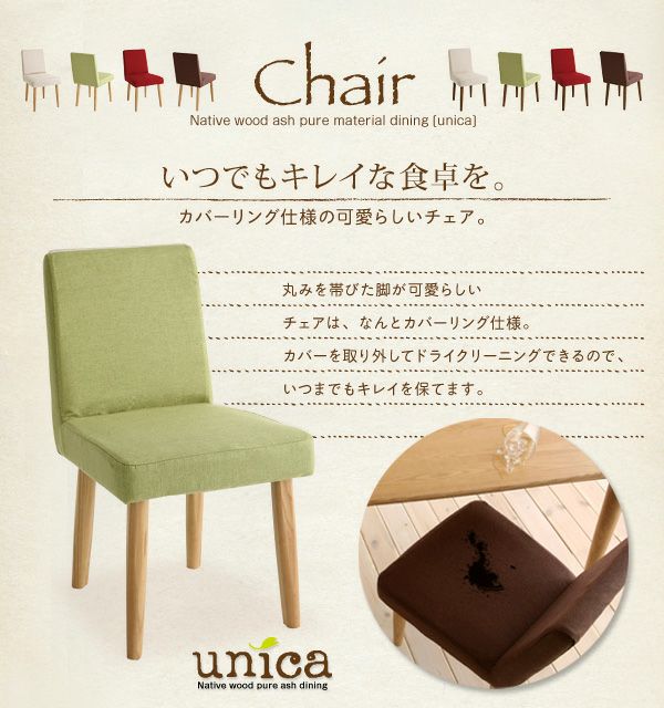 丸みを帯びた脚が可愛らしいチェアは、なんとカバリーング仕様。カバーのみ取り外してドライクリーニングできるので、いつまでもキレイを保てます。