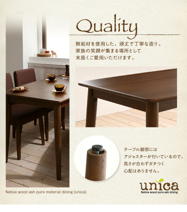 天然木タモ無垢材ダイニング 【unica】ユニカ スペック