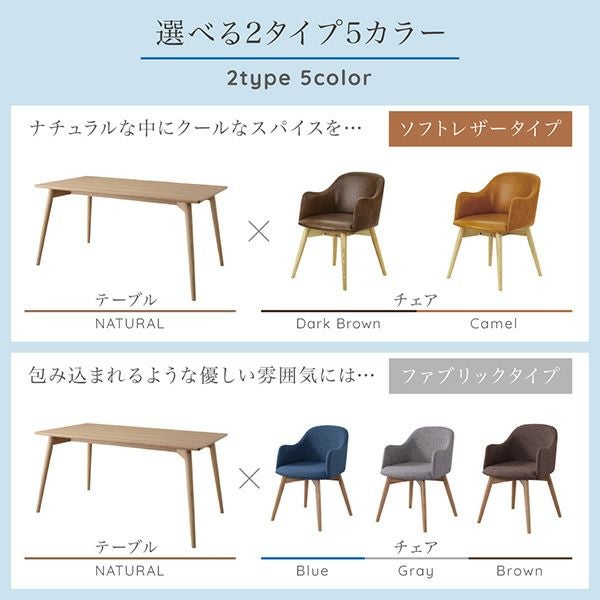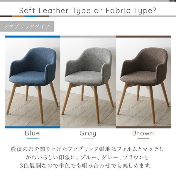 全ての角を削った丸みのデザインはかわいらしく上品。親しみやすいフォルムで食卓をやさしく包み込みます。チェアはファブリック(布)とソフトレザーの2タイプをご用意。カラーの組み合わせもお楽しみ頂けます。