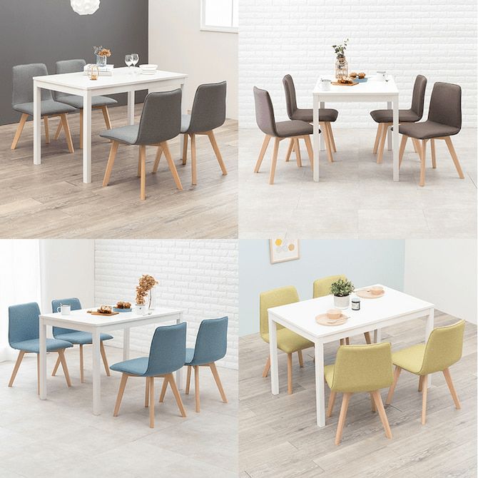 ファブリック×天然木チェア付属の北欧風ダイニング5点セット