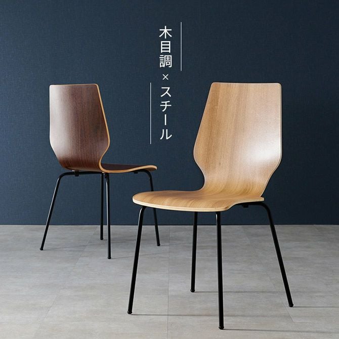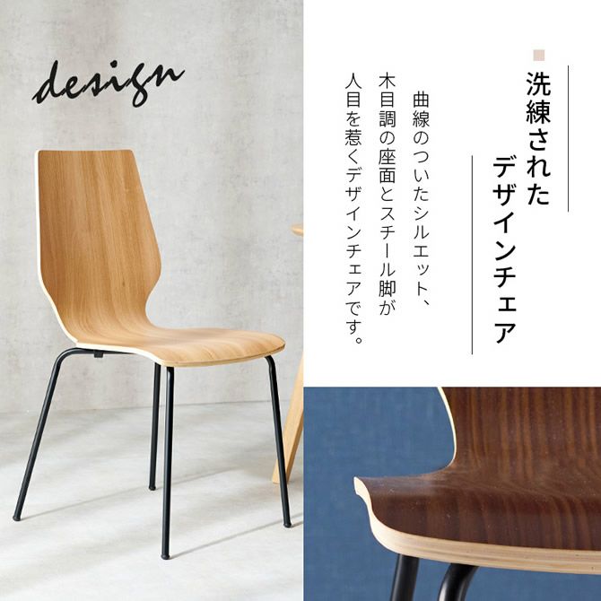 木目調の座面を引き立てるスチール脚がスタイリッシュなデザインチェア。