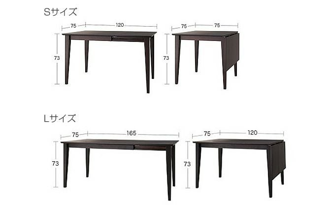 片方の天板と脚が伸びる仕様なので、来客時や用途に合わせてSサイズは2人用~4人用、Lサイズは4人用~6人用早変わりしてくれるので、スペースを有効活用できるダイニングテーブルです。