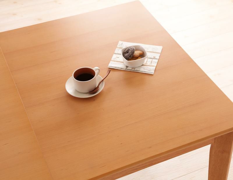 普段は普通サイズがちょうどいいけれど、来客時やたくさん料理を並べたい時、家族が増える時などに備えて天板がワイドに広がる便利なダイニングテーブル。長く使って頂けるようテーブル天板には耐久性の高い天然木ブナ材を使用し、厳しい検査にもパスした丈夫なつくりです。