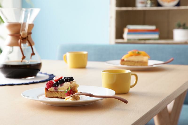 チェアよりくつろげ、ソファよりは沈み込まない絶妙な硬さ設計の為、長く座っていても疲れにくいのが特徴。ウレタン塗装でお手入れしやすいテーブルは、美しい木目と先端に向かってやや細くなるテーパードレックは、空間を引き締めるシャープな印象に。