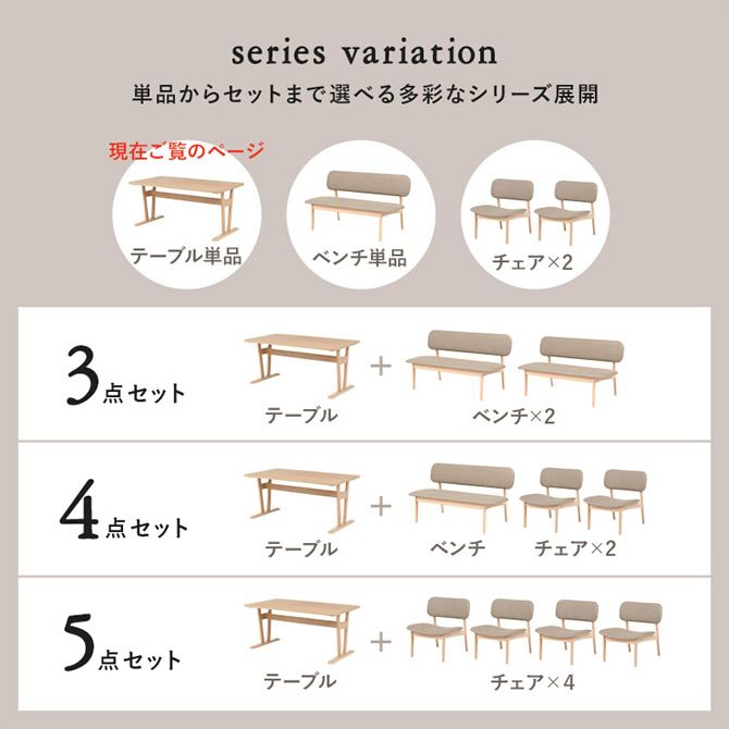 ロースタイル&幅広座面の天然木ダイニングシリーズ テーブル