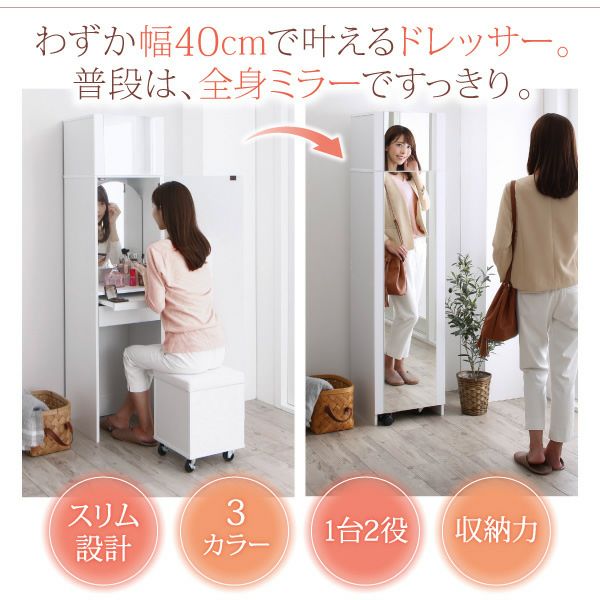全身ミラーになるすき間ドレッサースツールセット 【jenna】ジェンナ