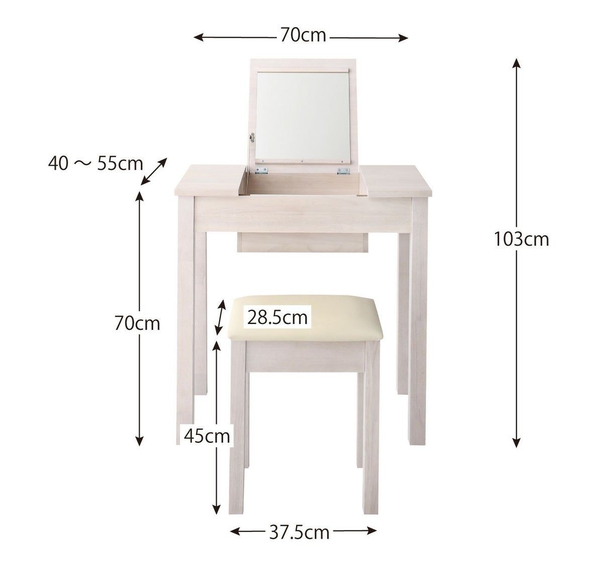 ミラー部分を閉じればデスクに早変わり。お得なスツール付き。