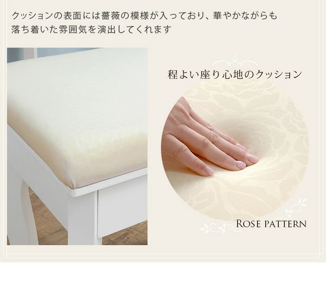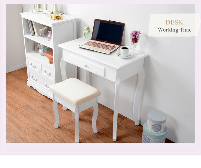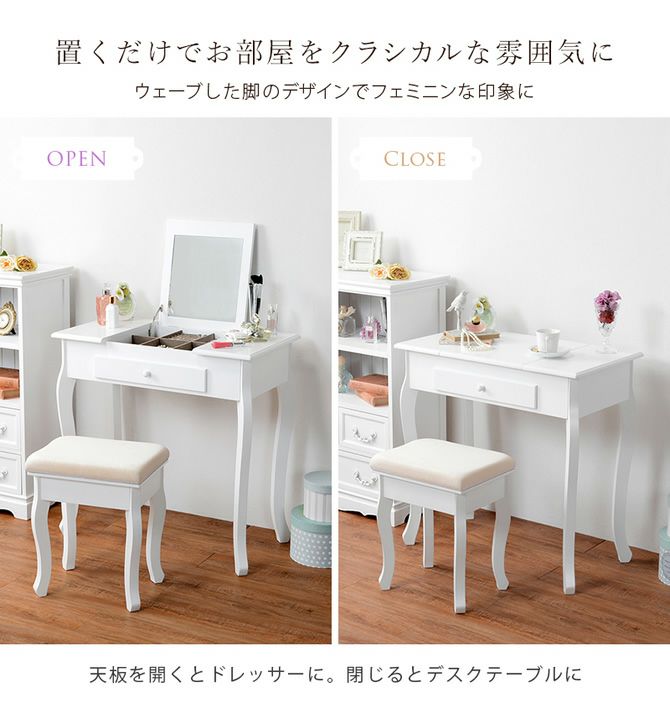 ロマンティックな脚の曲線が可愛い。天板を閉じるとデスクとしても使える2Wayタイプのドレッサー・スツールセット!