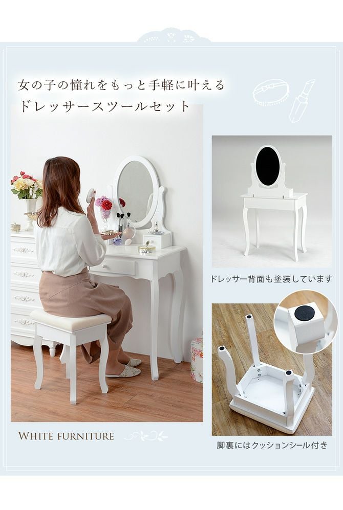 スツール付き楕円形ミラーのドレッサーセット