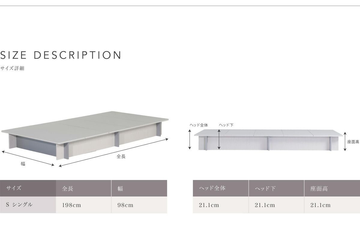 【サイズ】 ※ベッド、マットレスともに上記説明画像参照
