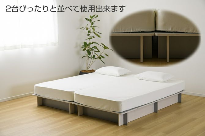 マットレス下は収納スペースにもなり、分割された床板を上げるだけで中身の取り出しが可能。設置や組立も簡単で、2台横並べてのご使用もおすすめです。