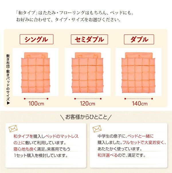 ※敷布団が付属した和タイプはシングルのみ。セミダブルとダブルの和タイプはございません。
