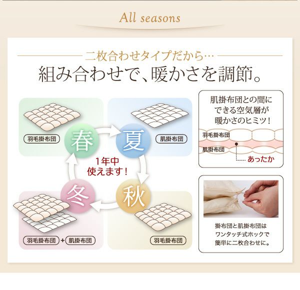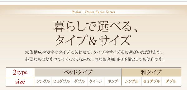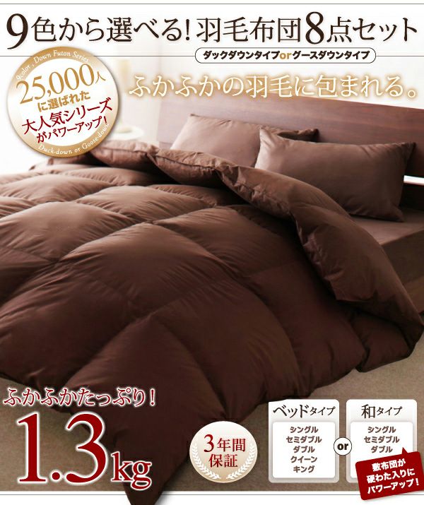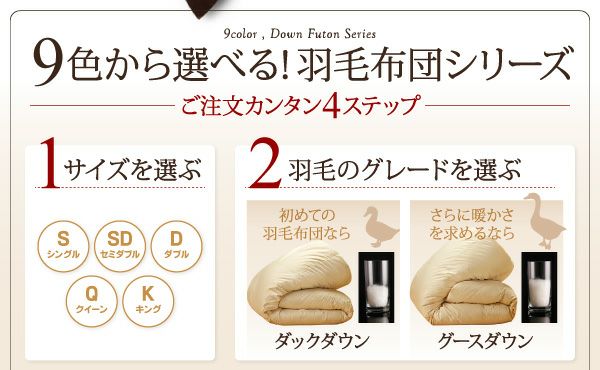 特徴 9色から選べる!羽毛布団8点セット プレミアム敷布団タイプ 9色から選べる!羽毛掛け布団 特徴 特徴