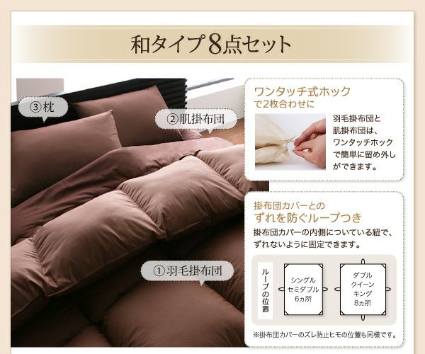 9色から選べる!羽毛布団8点セット スペック