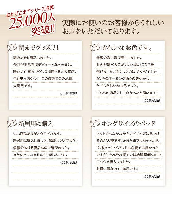 厳選素材使用して、ISO認定工場で作られた安心の羽毛布団 Quality: