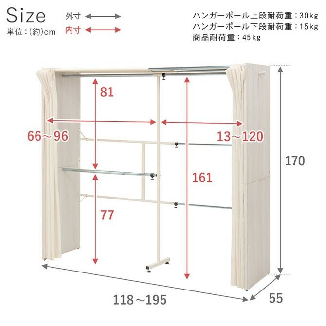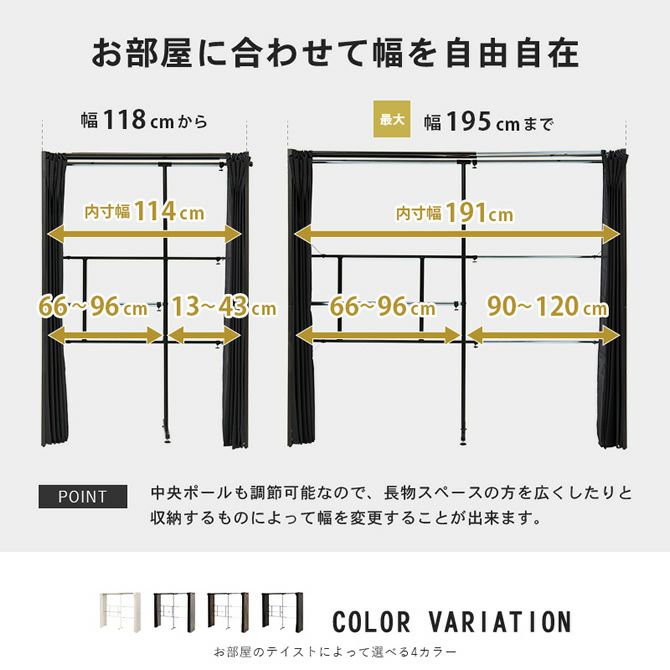 他の画像を見る ホワイト グレー ダークブラウン ウォルナットブラウン 値下げしました! シックな4色展開!カーテン付き伸縮クローゼット [棚なしタイプ] カートに入れる お気に入りに登録する 定価 ¥ 21,800 のところ 当店特別価格 ¥ 19,800 税込