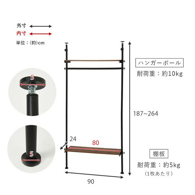 幅90cm:(約)幅90×奥行24×高さ187~264cm