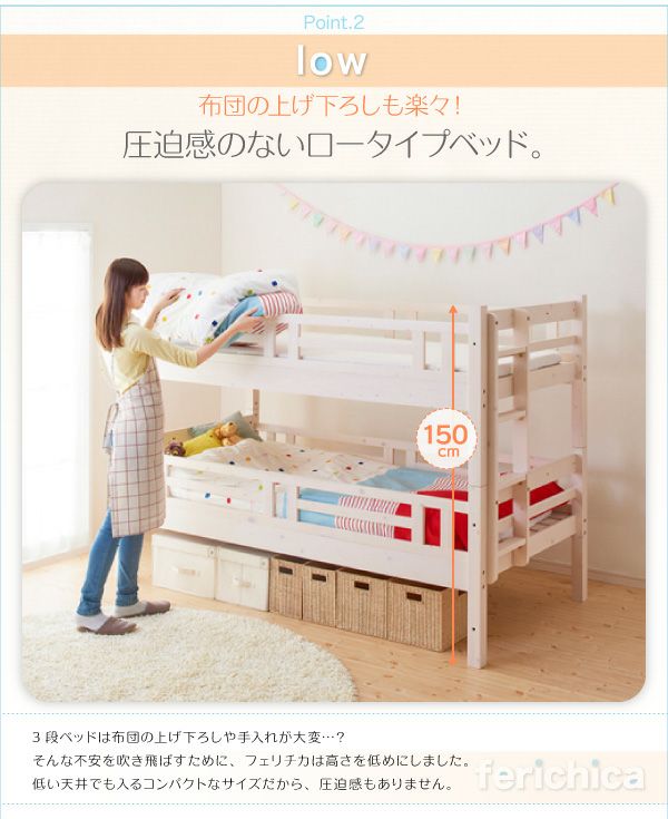 他の画像を見る ホワイト ナチュラル 改行ラベル S タイプが選べる頑丈ロータイプ収納式3段ベッド 【fericica】フェリチカ 詳細を見る お気に入りに登録する 当店特別価格 ¥ 10,900 税込 〜 当店特別価格 ¥ 税込