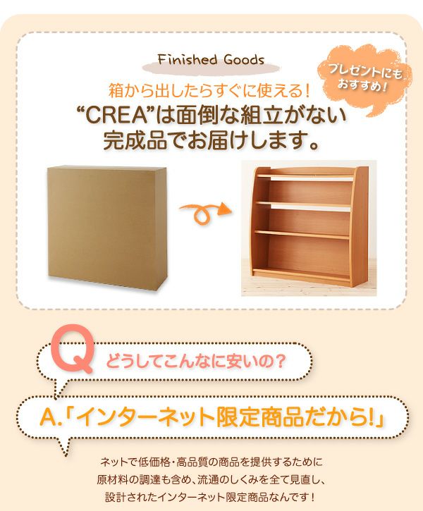 完成品!シンプルデザインキッズ収納家具シリーズ 【CREA】クレア 本棚