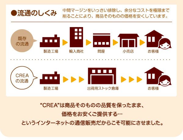 また、通販限定のルートや仕組みを利用する事で低価格・高品質の商品提供に日々努めております。