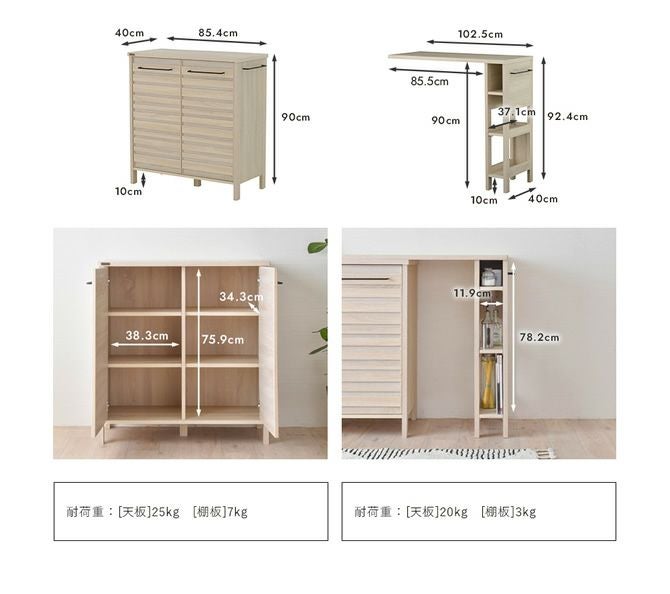 【キッチンキャビネット】天板25kg、棚板7kg