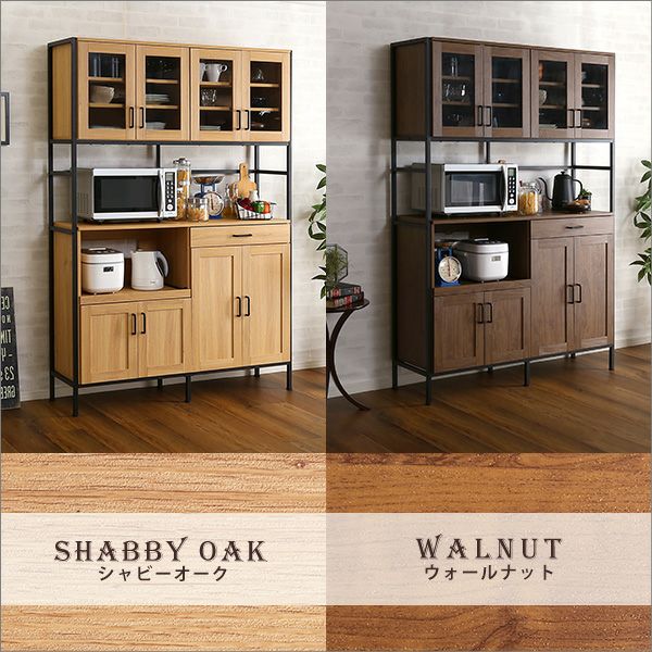 3人、4人家族におすすめの収納場所に困らない120cm幅の大容量ワイドタイプです。上段はガラス扉の収納なのでオシャレに魅せる収納ができます。キッチン家電や食器など丸々収納できる大容量でキッチン周りもスッキリできます。