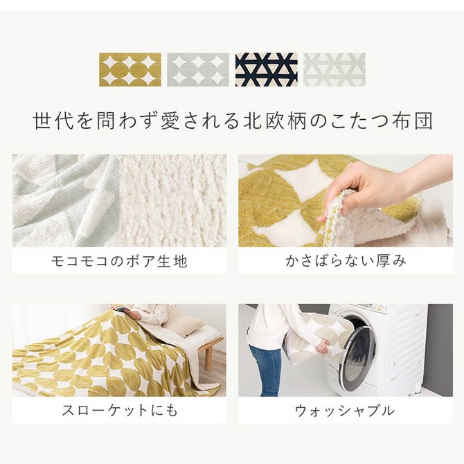 柄が特徴的で人目を引く北欧柄のうす掛けこたつ布団。