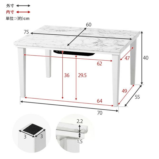 大理石調こたつ+うす掛け布団2点セット 【Arula-Mbique】アルラMビケ