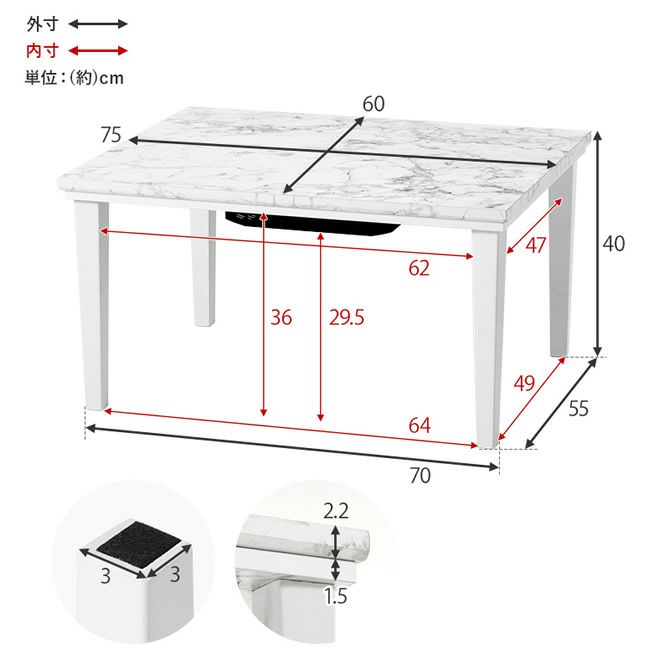 【サイズ】 こたつ:(約)幅75×奥行60×高さ40cm
